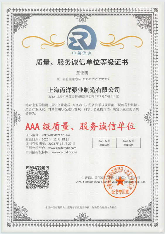 上海丙洋泵業(yè)集團(tuán)有限公司是專業(yè)從事水泵、生活消防自動(dòng)給水設(shè)備及水泵智能控制的開發(fā)、生產(chǎn)、銷售為一體的生產(chǎn)型現(xiàn)代化民營(yíng)企業(yè).主要產(chǎn)品擁有立式多級(jí)消防泵、立式單級(jí)管道消防泵、消火栓噴淋泵、浙江排污泵、成套供水設(shè)備、上海消防泵、管道離心泵、消防泵、恒壓消防泵,化工泵,離心泵、管道泵、多級(jí)泵、XBD消防泵、排污泵、自吸泵等系列產(chǎn)品.丙洋泵業(yè)在以質(zhì)量求生存,科技創(chuàng)興;走向未來的方針,不斷開拓進(jìn)取、創(chuàng)新發(fā)展,在長(zhǎng)期的實(shí)踐中形成了一套完整的質(zhì)量管理體系,并配備了一支安裝調(diào)試、維護(hù)的售后服務(wù)隊(duì)伍.本公司以優(yōu)質(zhì)的管理、優(yōu)質(zhì)的產(chǎn)品、優(yōu)質(zhì)的服務(wù)贏得了國(guó)內(nèi)廣大用戶的信賴和好評(píng).